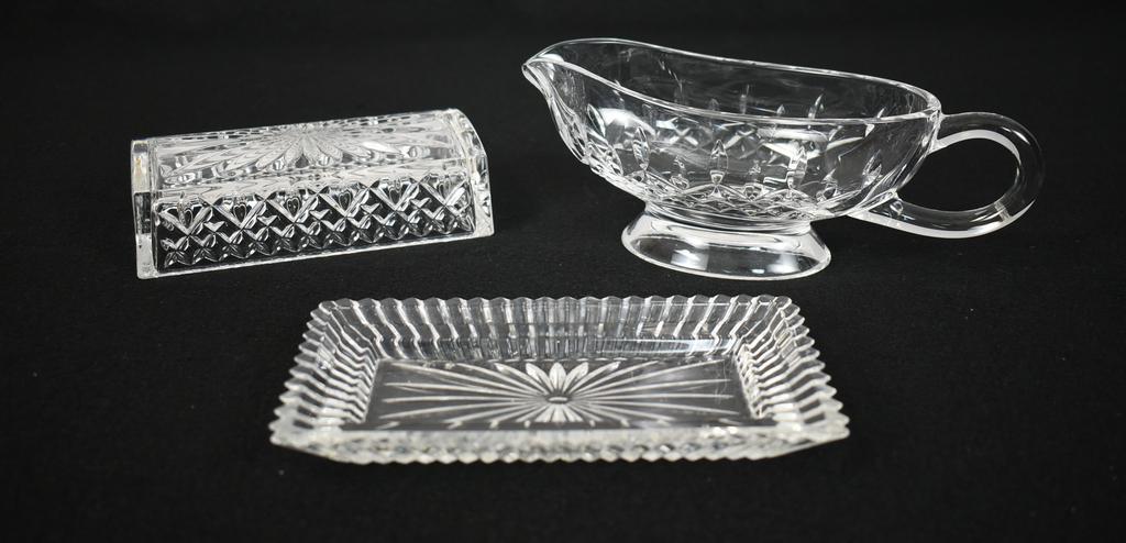 Group of Waterford crystal tableware including bowls, small vases, decanters. Tallest: 10 7/8".