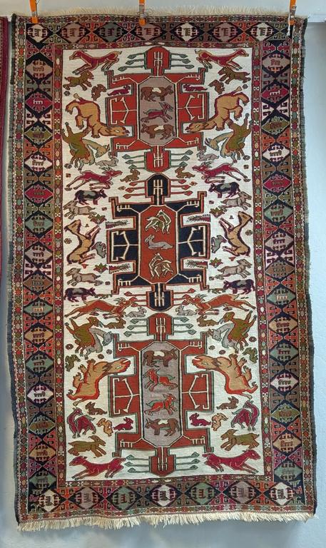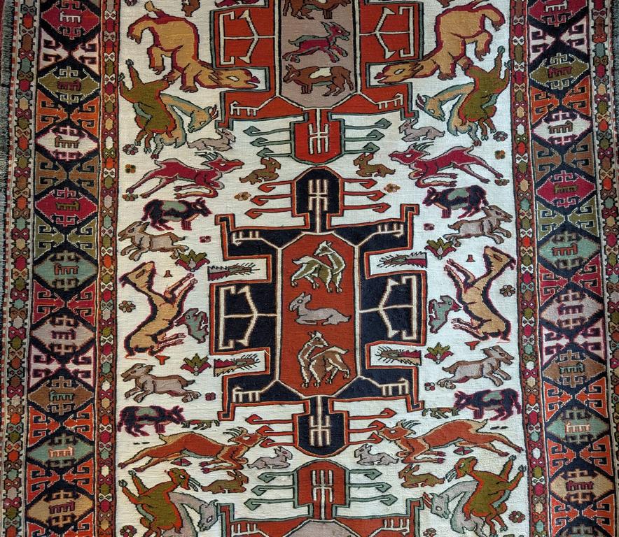 Hand knotted Afshar pictorial rug depicting animals and symbols. 6'6"x 3'11".