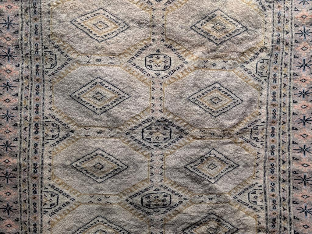 Hand Knotted Oriental Rug. Cream Ground With Yellow & Black Diamond Pattern. 5'10" X 3'10".