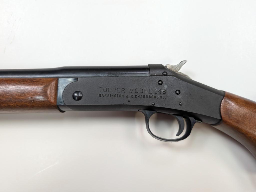 Harrington & Richardson "Topper Model 148", 16 -gauge, single shot, break top, shotgun. S/N: none. Black in color with 28" barrel.