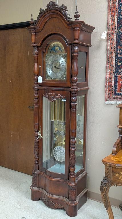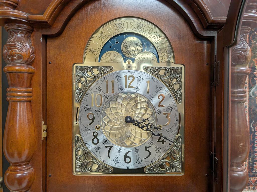 Howard Miller Veronica Grandfather Clock. Moon Phase Dial, Time, Chime And Strike. 87" Tall.
