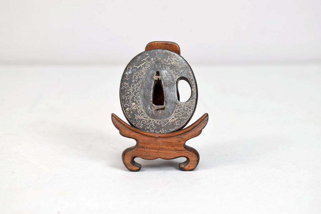 Japanese Bronze Tsuba, Edo Period. 2 3/8" X 1 7/8". with A Stand.