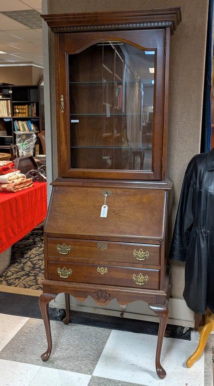 Jasper Cabinet Contemporary Petit Drop Front Secretary. Glass Front Door, 3-Shelves And 2 Drawers.