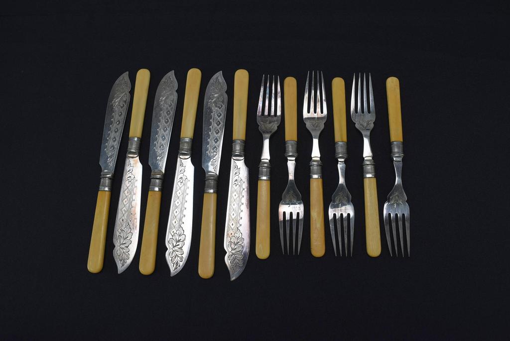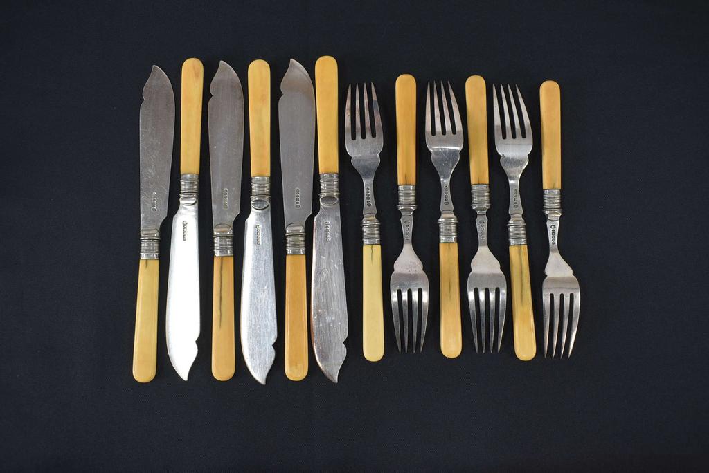 John George Graves Sheffield silver plated fish cutlery set with composite handles in presentation case.