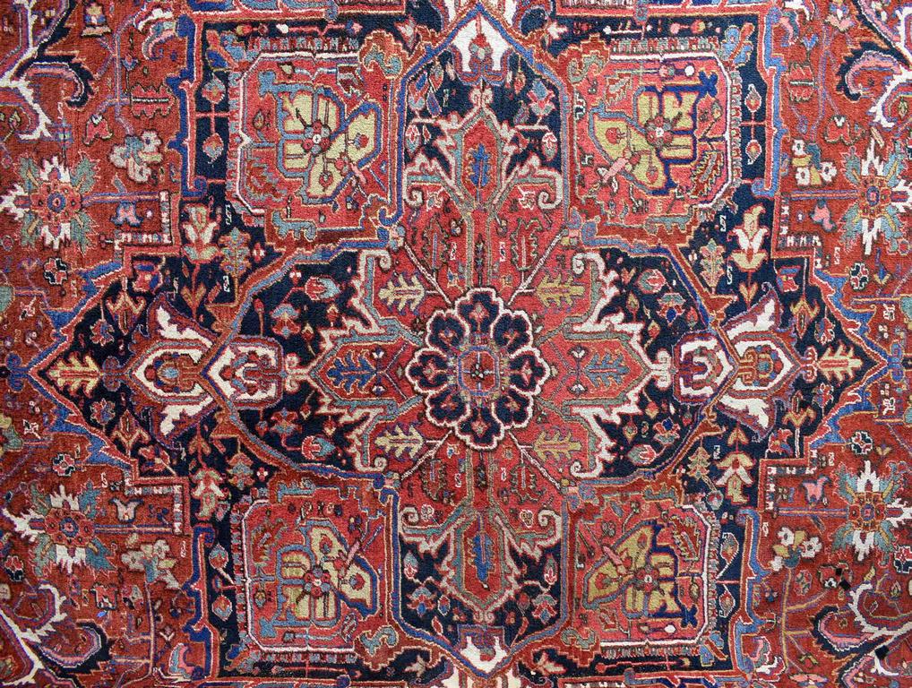 Large hand knotted Persian rug. Vibrant colors, large center medallion, geometric patterns and spandrels. 17'8" x 11'5".