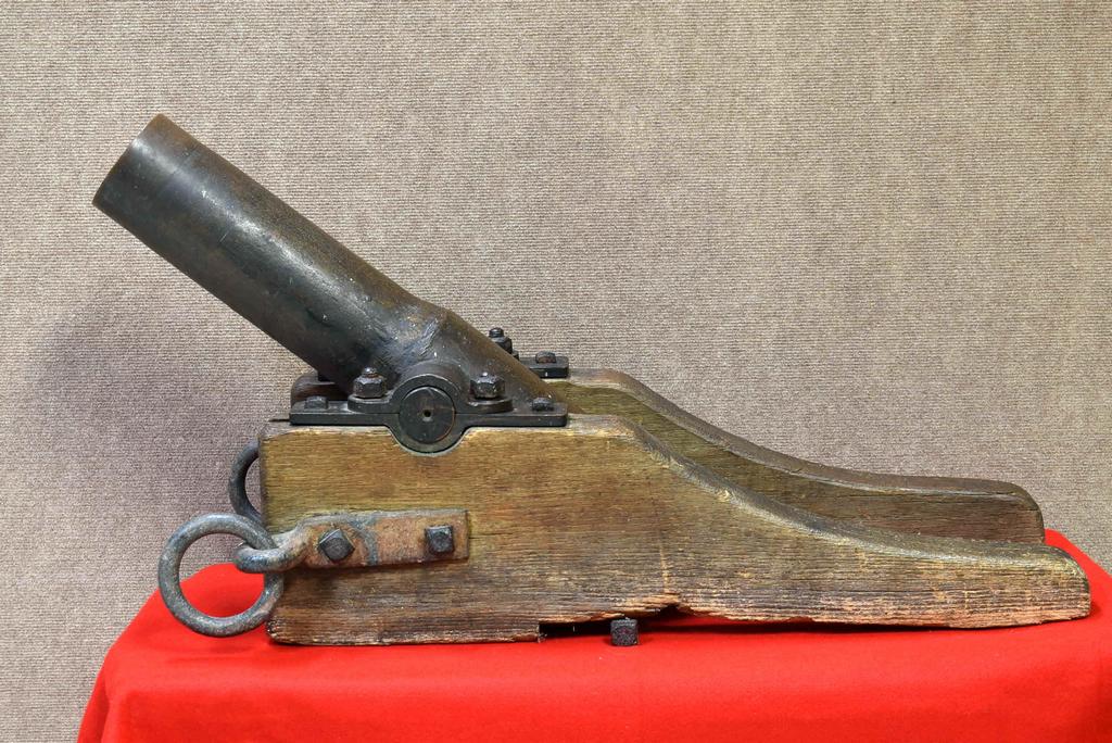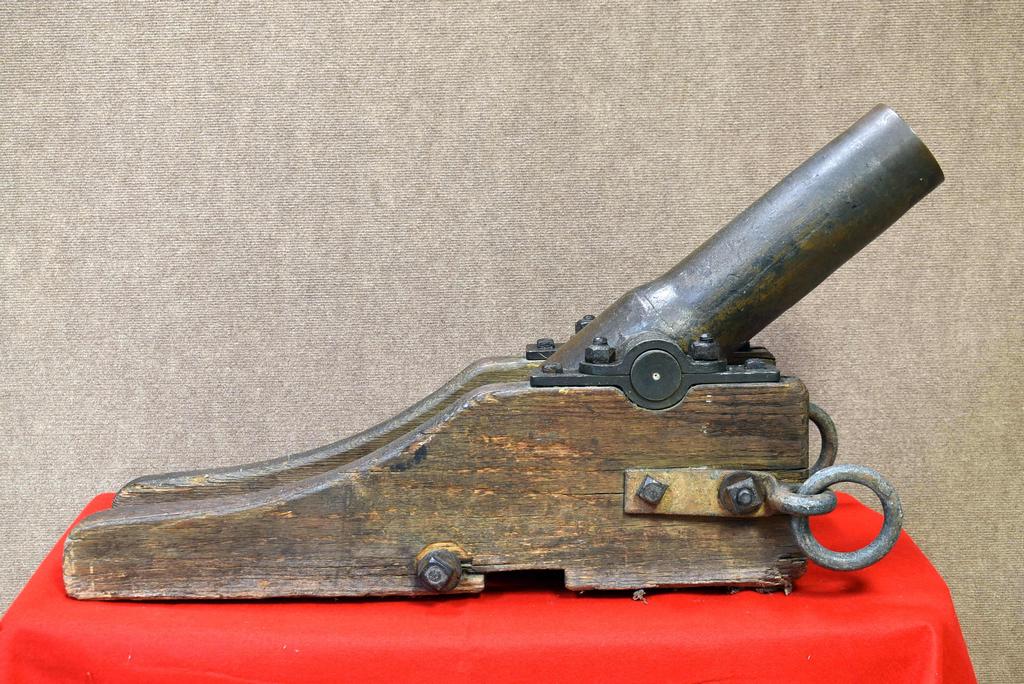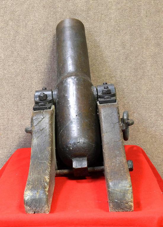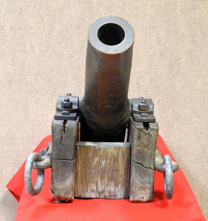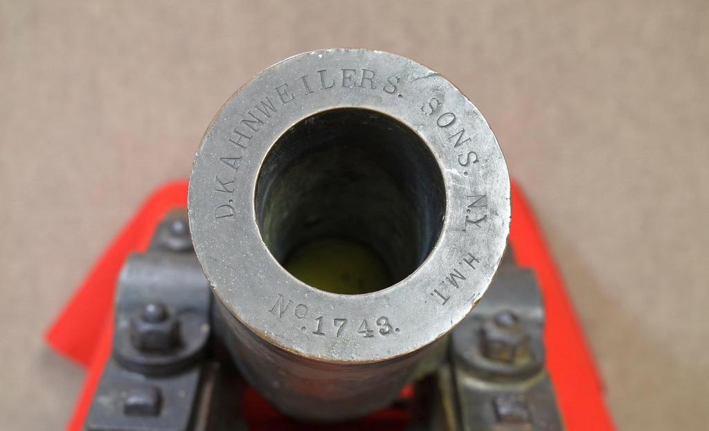 Lyle Gun rescue line throwing cannon. Solid bronze cannon with wood and iron carriage. Barrel end marked "D. Kahnweilers Sons. NY.", "No. 1743" and "HMT". Dimensions: overall 39 L x 15.5 W x 20 H inches, bore 2.5 inches.