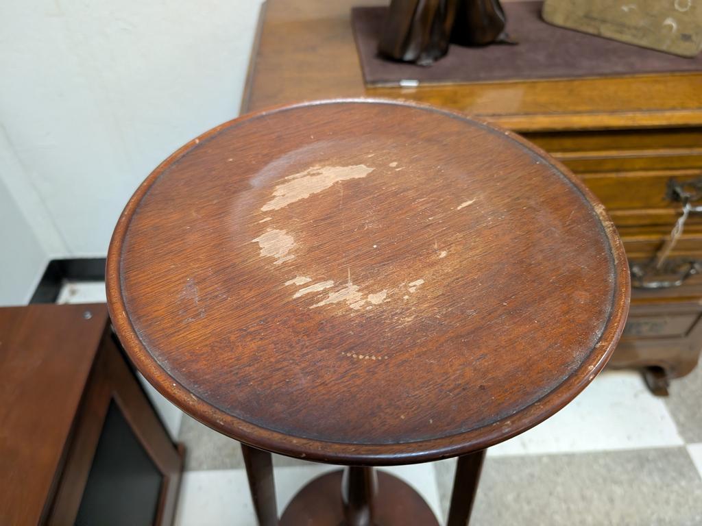 Mahogany Jardiniere Stand. Circular Top, Flat Cut Legs With Pad Feet. 40" Tall, 12" Top Dia.
