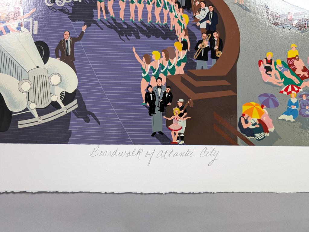 Melanie Taylor Kent serigraph, Boardwalk, Atlantic City. Pencil signed, #323/500. Unframed, overall: 30 1/4" x 46 1/4".