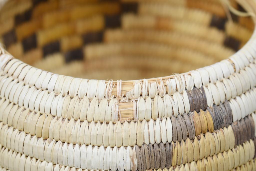 Mid 20th C. Papago lidded coil basket. 9 1/2" x 5 1/2".