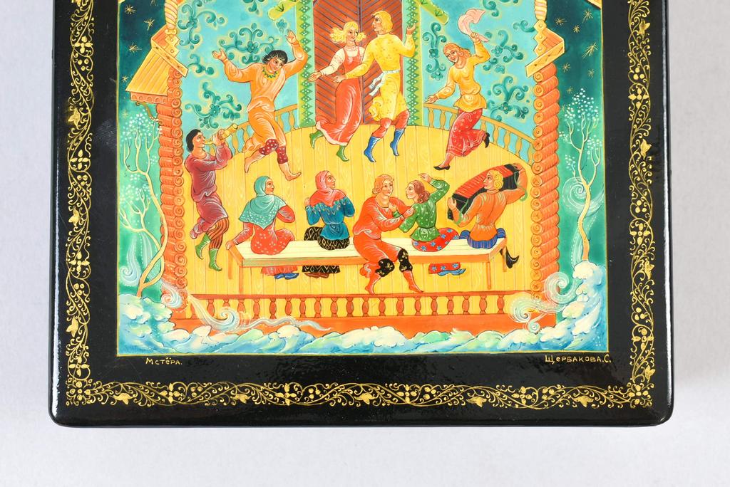 Mstera Russian Lacquer Box Depicting A Fairy Tale, Signed. 5 5/8" X 5 5/8" X 1 3/4".
