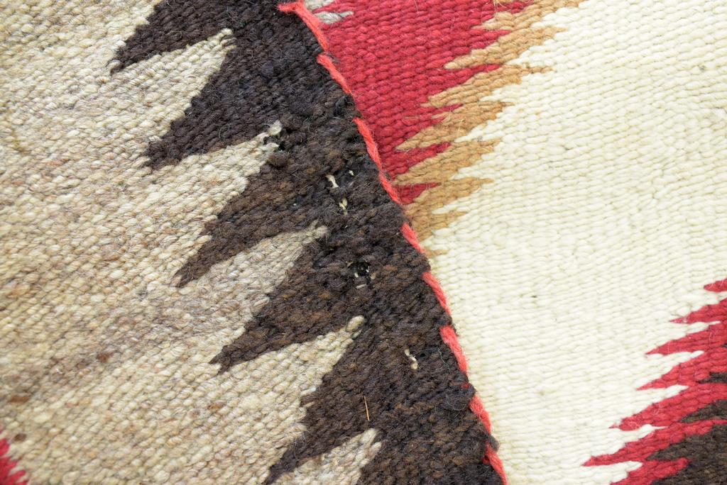 Navajo hand woven rug. Eye dazzler style in gray, brown, red and black. 69.5" x 40.5".