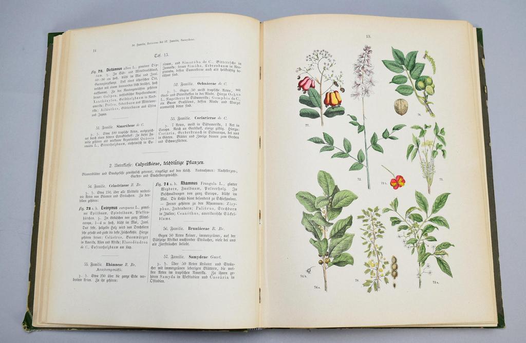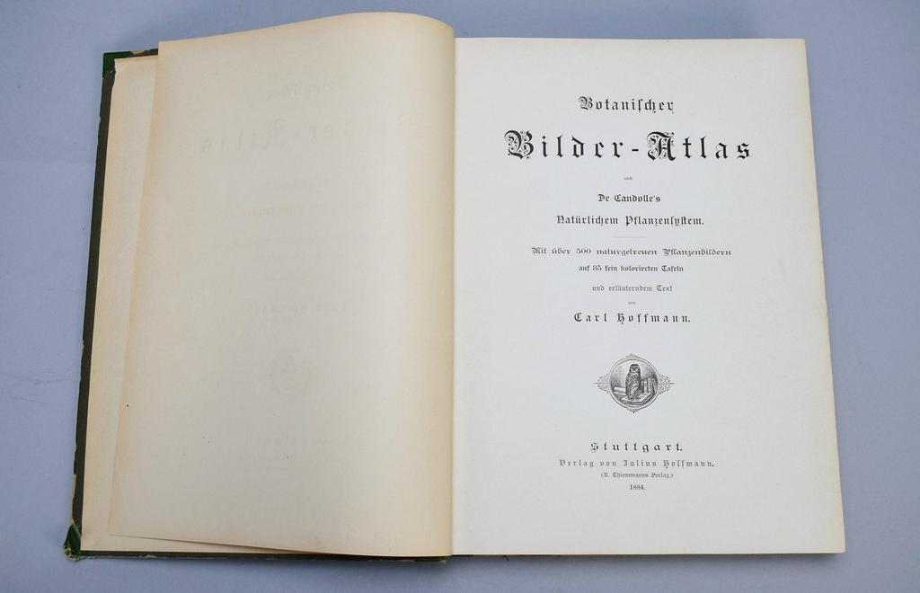 One Volume, Botanischer Bilder Atlas (Botanical Picture Atlas) by Carl Hoffmann. Julius Hoffmann Stuttgart 1884. Over 500 plant illustration in 85 color plates.