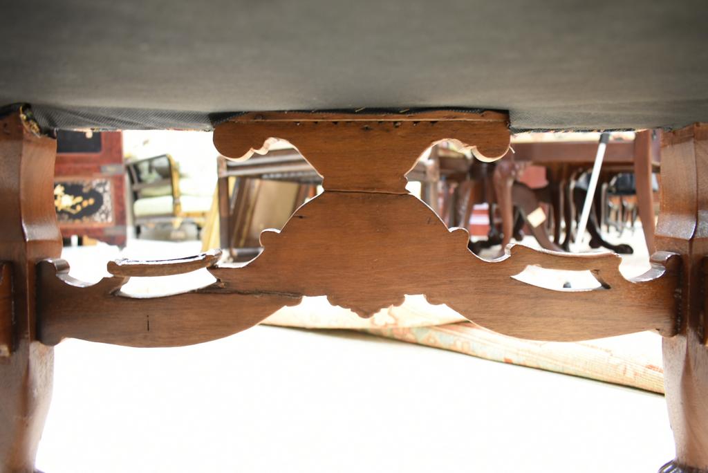 Ornate carved high back chair with upholstered seat and back. 58" tall.