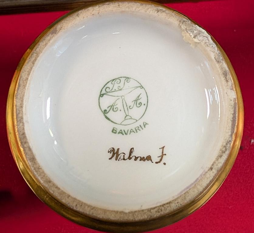 Pair Of German Schonwald Hand Painted Vases With Reticulated Tops. 9 1/4" Tall.