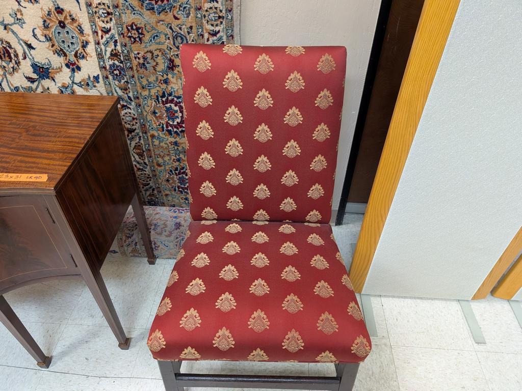 Parsons Chair With Red & Gold Damask Upholstery.