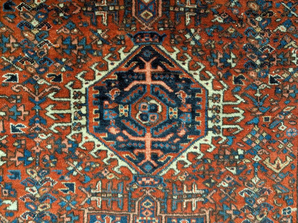 Persian Hand Knotted Wool Rug, Possibly Hamadan. Red Field With Blue And Beige Accents. 6' X 4'10".