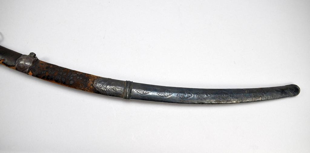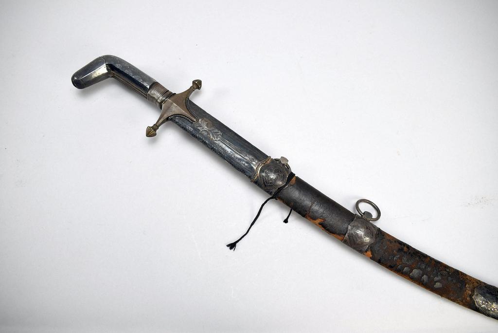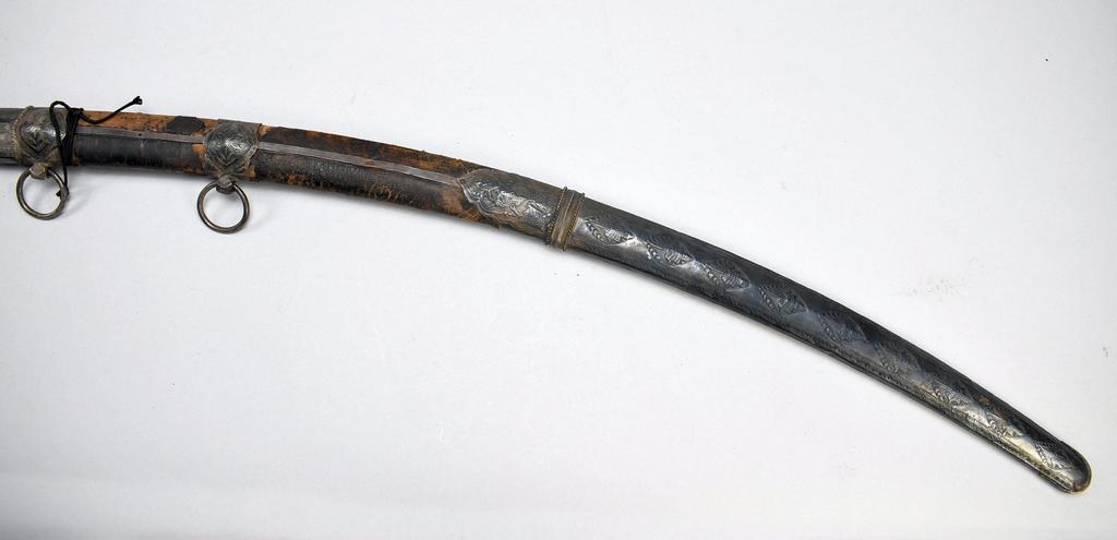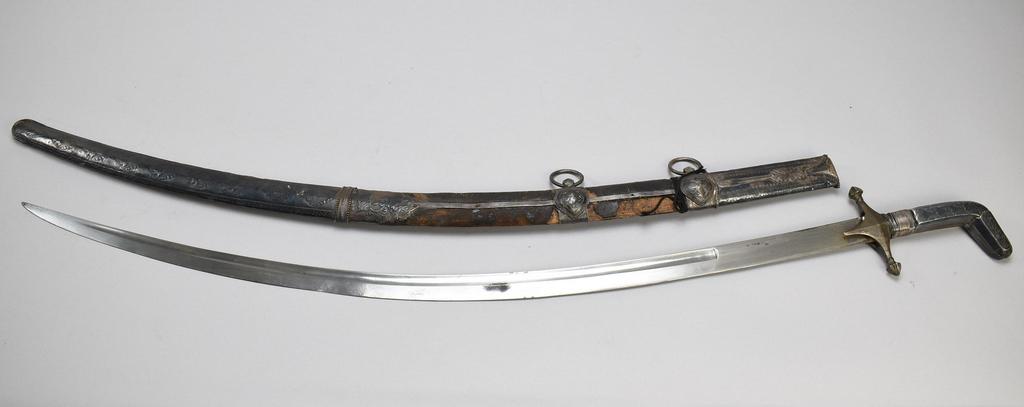 Persian Shamshir Sword and Scabbard, 18th/19th century. Sword: blade 33 in. long, overall 37.5 in long. Scabbard: 33 in. long.