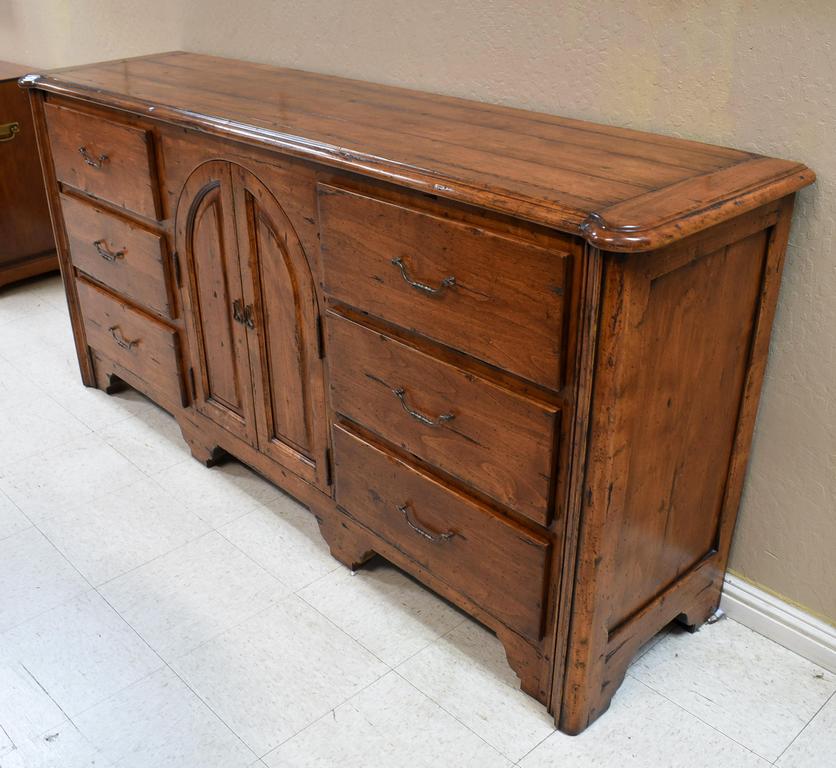 Pine 6-drawer, 2-door sideboard. 75" W, 18 3/4" D, 36" H.