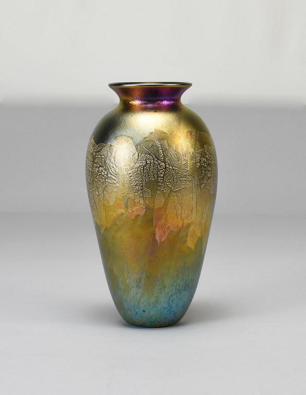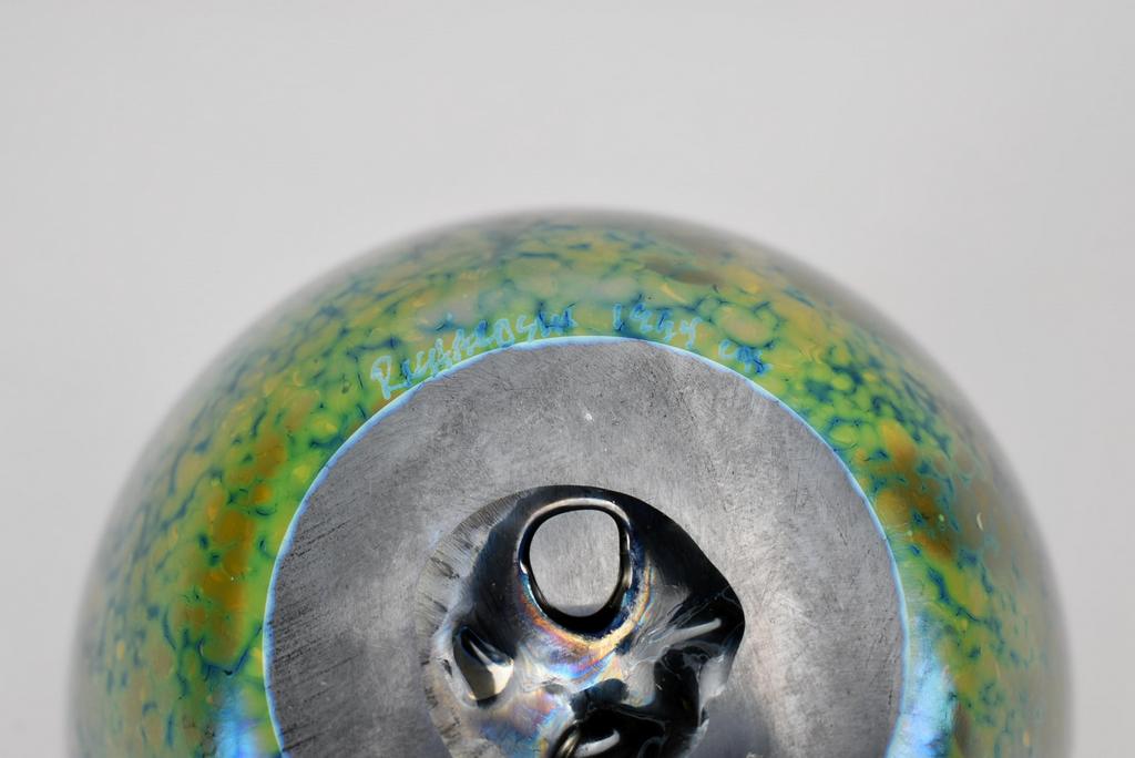 Richardson art glass vase. Iridescent in various hues. Signed, dated 1994. 9 1/4" tall.