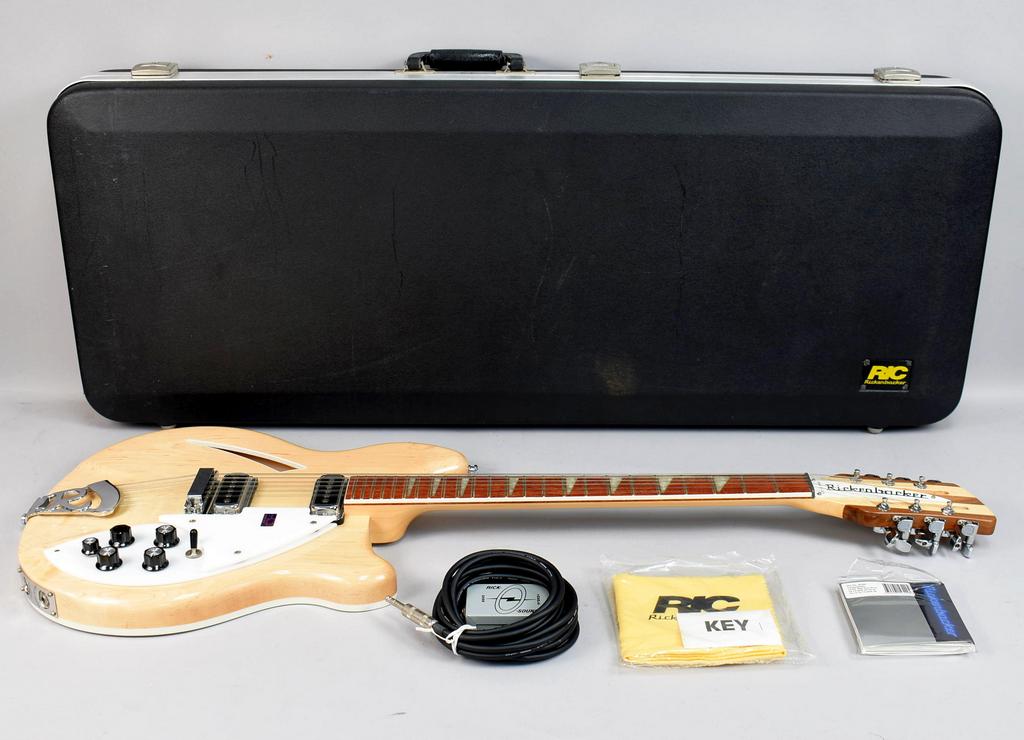 Rickenbacker 360 Electric Guitar with MapleGlo finish. Serial no. 25221. With a Rick-O-Sound splitter box and a hard case.