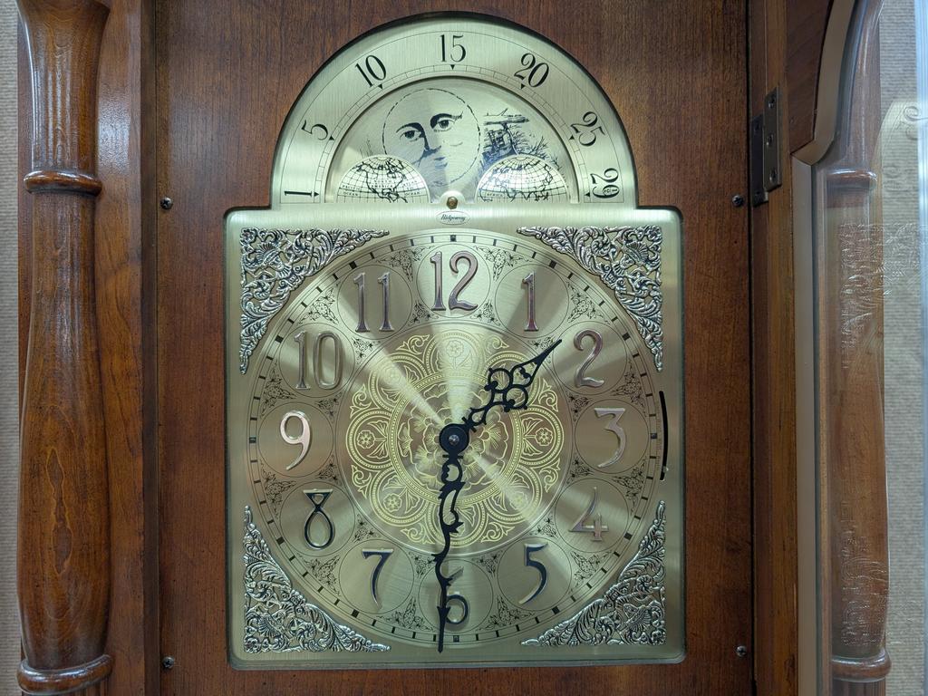 Ridgeway Model 330 Grandfather Clock. Moon Phase, Arabic Numerals On The Dial. Movement: Gj. 82.5" H, 23.5" W, 13" D.