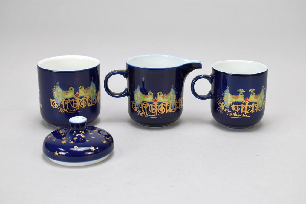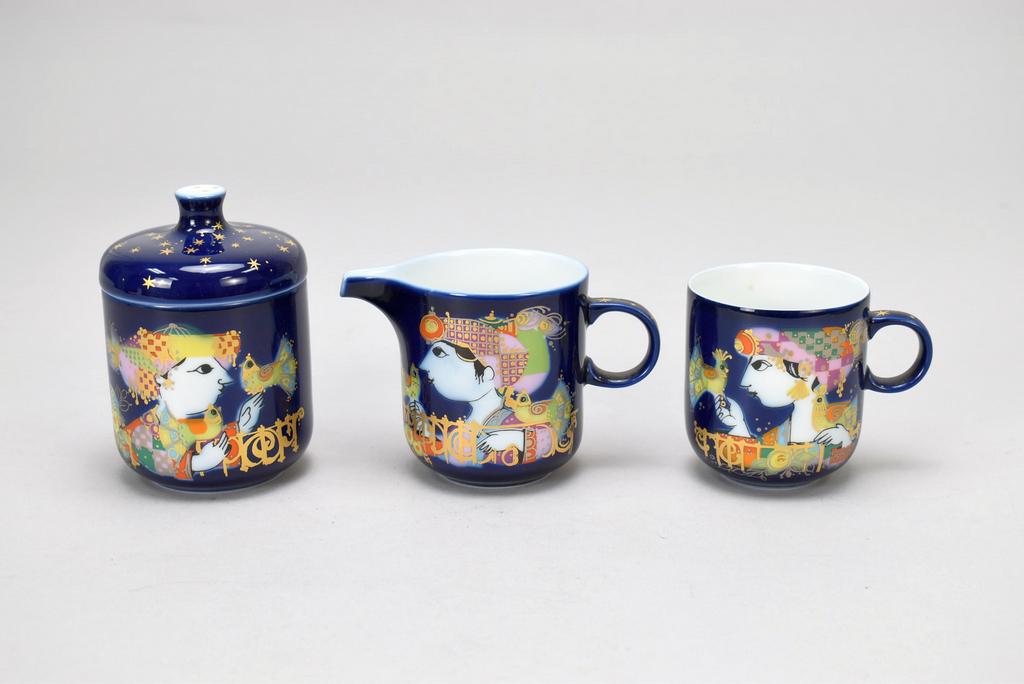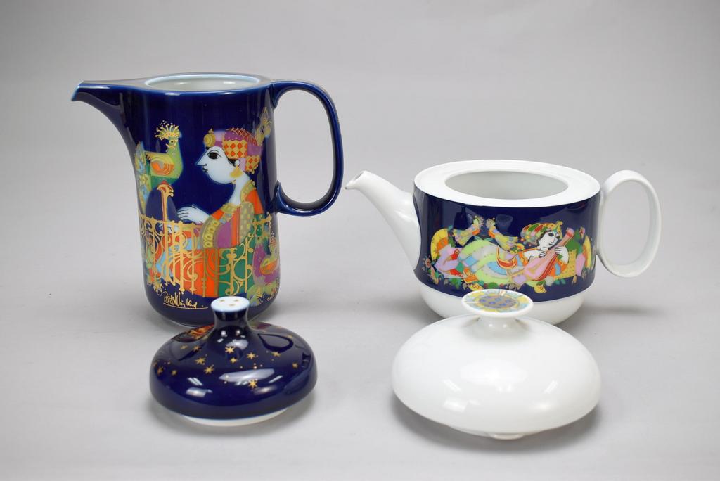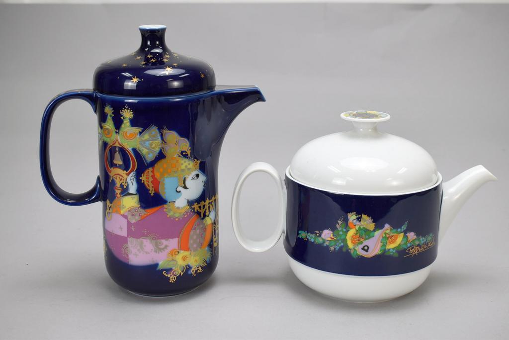 Group of Rosenthal Bjorn Winblad porcelain items, 9 pcs. ("1001 Nacht" coffee service for 1, Studio line charger, teapot, 2 plates). Coffee pot: 9.5" tall.