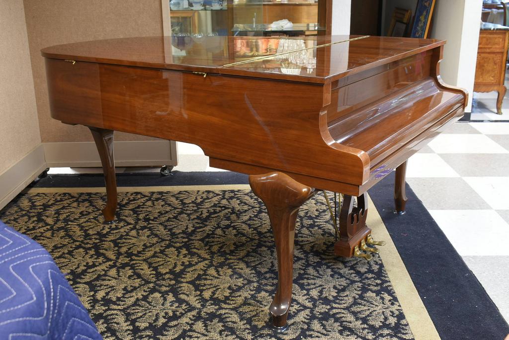 Schimmel K175 Tradition grand piano. Mahogany gloss finish. Made in Germany. Dated 16 1 84. Serial No. 246780. Condition: Used, some fading on the right side.