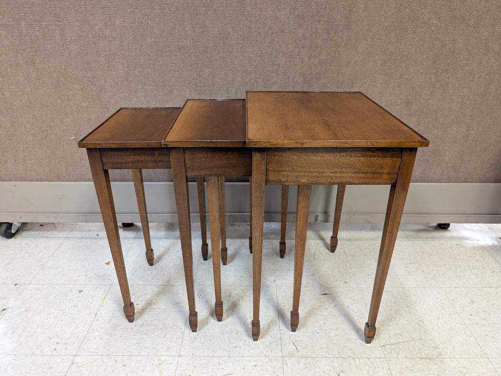 Lot 211: Set Of (3) George III Style Walnut & Mahogany Nesting Tables.