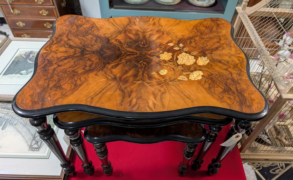 Lot 143: Set Of (3) Italian Nesting Tables With Marquetry Inlay.