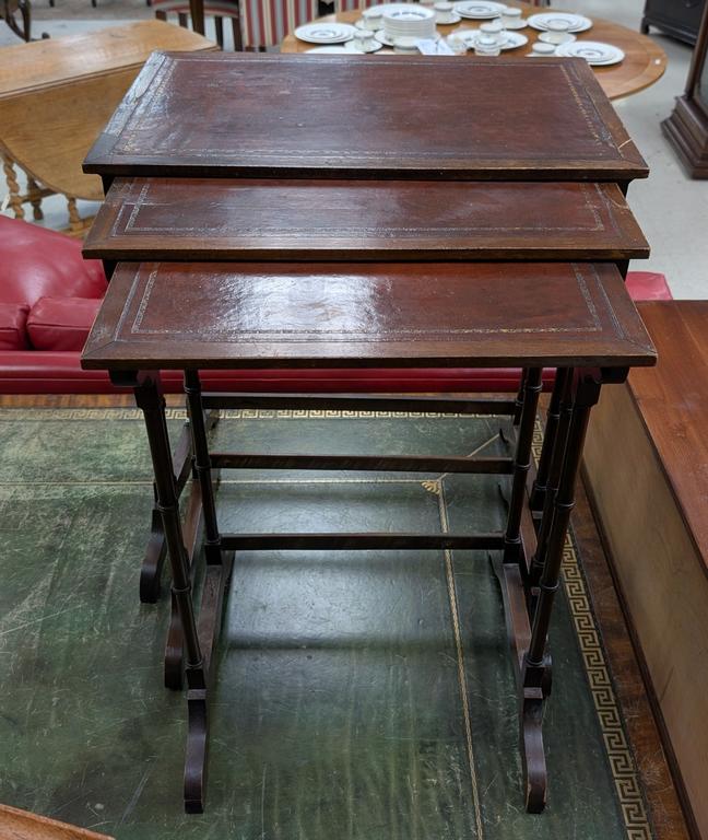 Set Of (3) Mahogany Nesting Tables With Leather Inset Tops