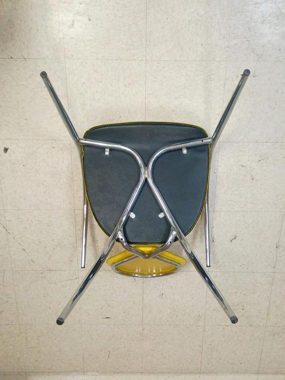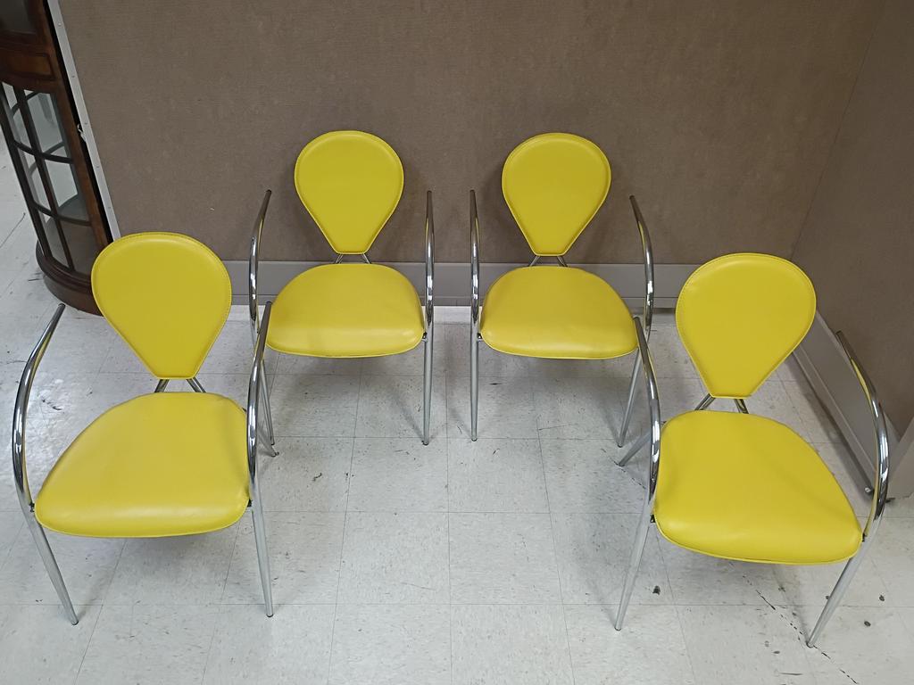 Set of (4) Modernist chrome and yellow vinyl armchairs. 21" W, 22"D, 33" H.