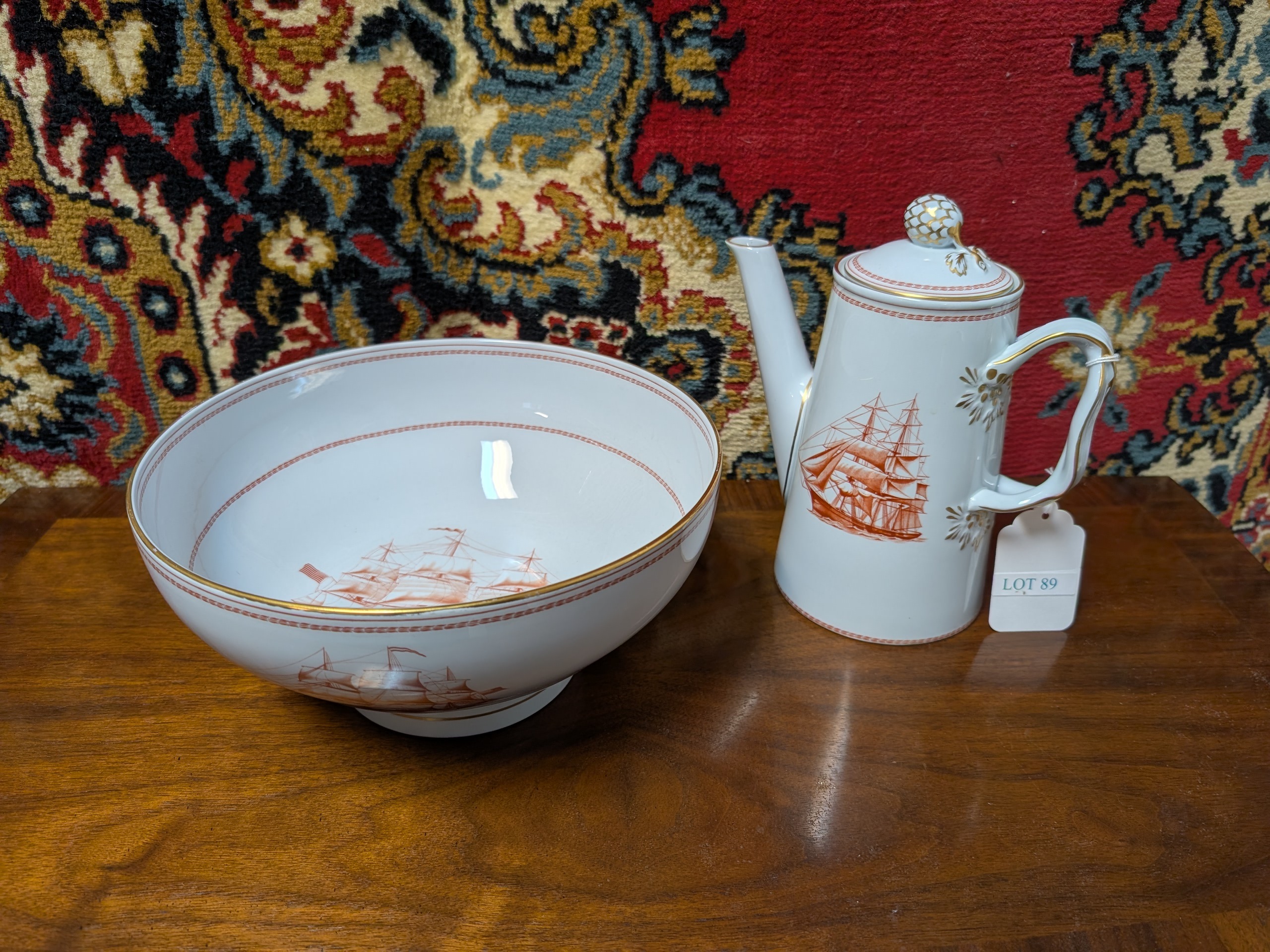 Lot 89: Spode Trade Winds Porcelain Fruit Bowl & Coffee Pot.