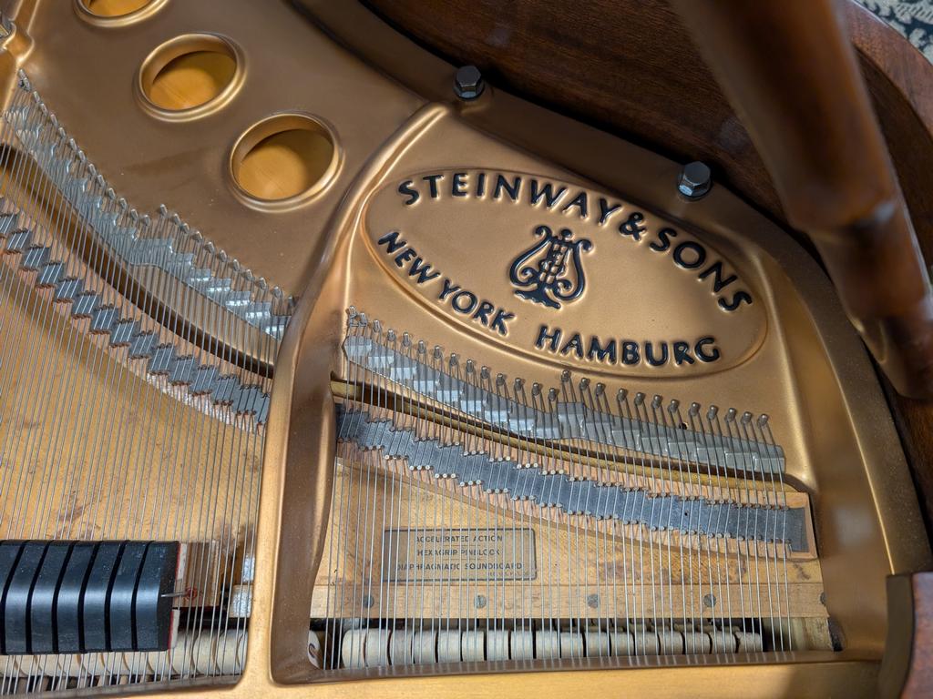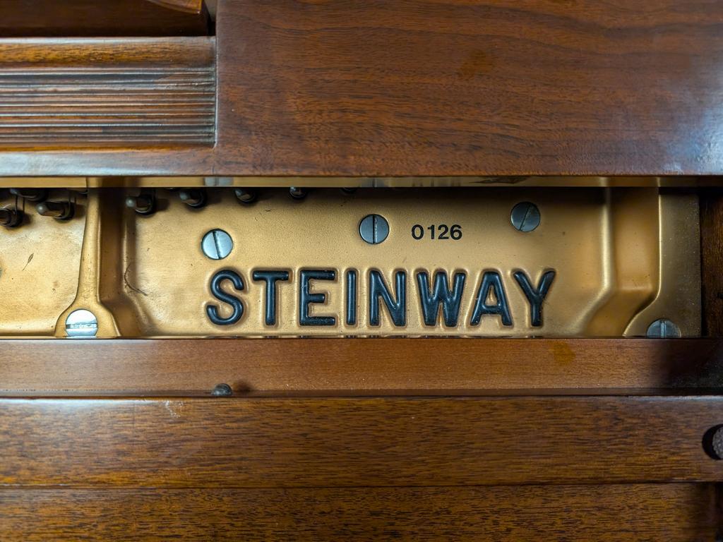 Steinway Model S Baby Grand Piano. Serial no. 519272. With bench. Mahogany finish.