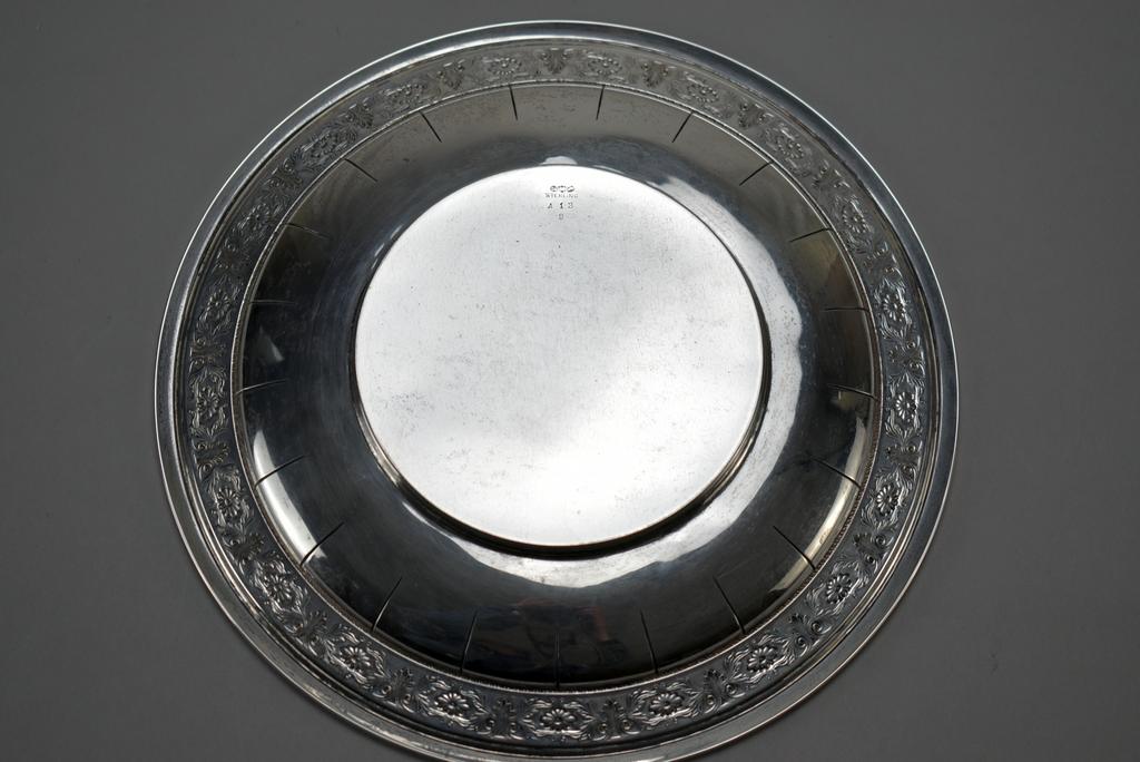 Sterling Silver circular dish and a creamer. Dish: 9" diameter. 11 troy oz total.