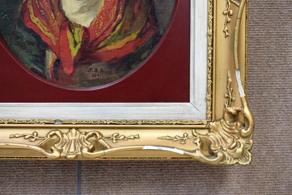 Susan Bell Faed oil on canvas, A Tinker's Child. Signed Susan B. Faed. 11 1/4" x 9 1/4". Gilt framed. Overall: 17 3/4" x 15 3/4".