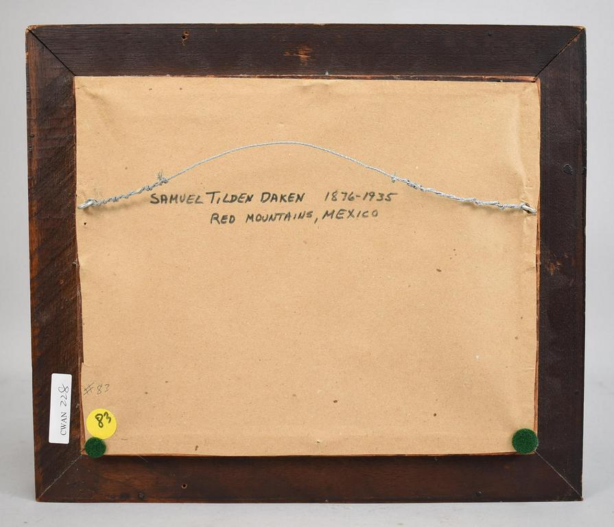 Tilden Daken (1876 - 1935), Oil on Board, Red Mountains, Mexico. Signed lower right. Artist name and title on the back. 9 1/4" x 11". Framed, overall: 11 3/4" x 13 3/4".