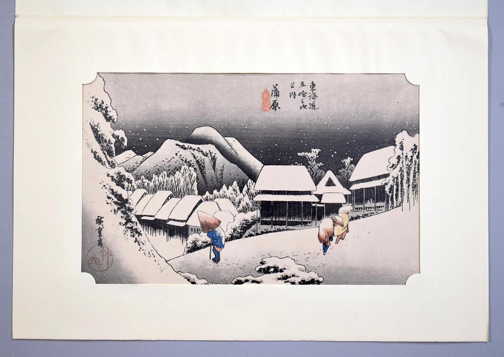 Lot 8: Utagawa Hiroshige, 3 Woodblocks from 53 Stations of Tokaido.