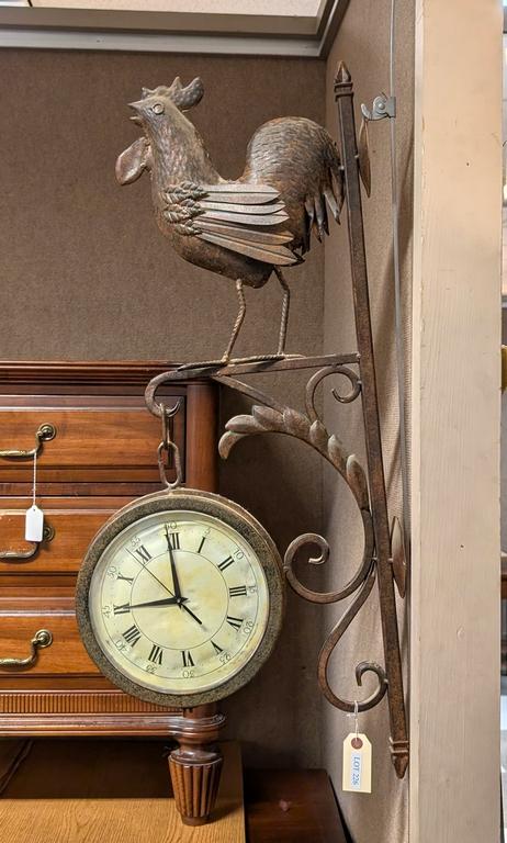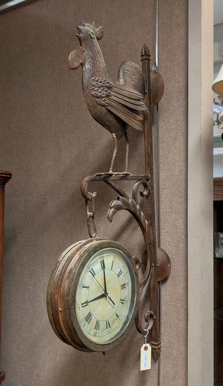 Lot 226: Vintage Metal Rooster, Double Sided Clock.