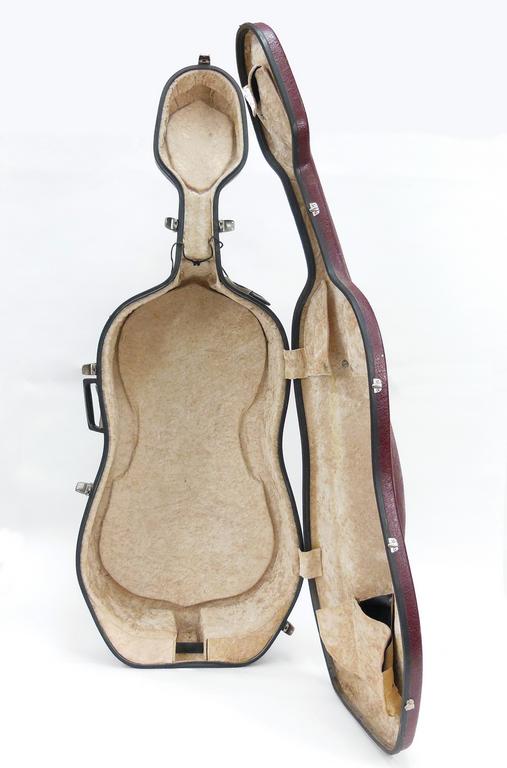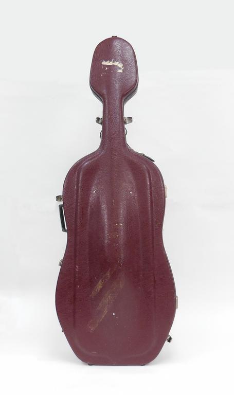 Vintage cello size 7/8, 19th century, probably German manufacture. The scroll possibly from a later period. Missing soundpost, missing bridge. No maker label. Back 28-1/2", overall length 47", width 16-1/4". With case.