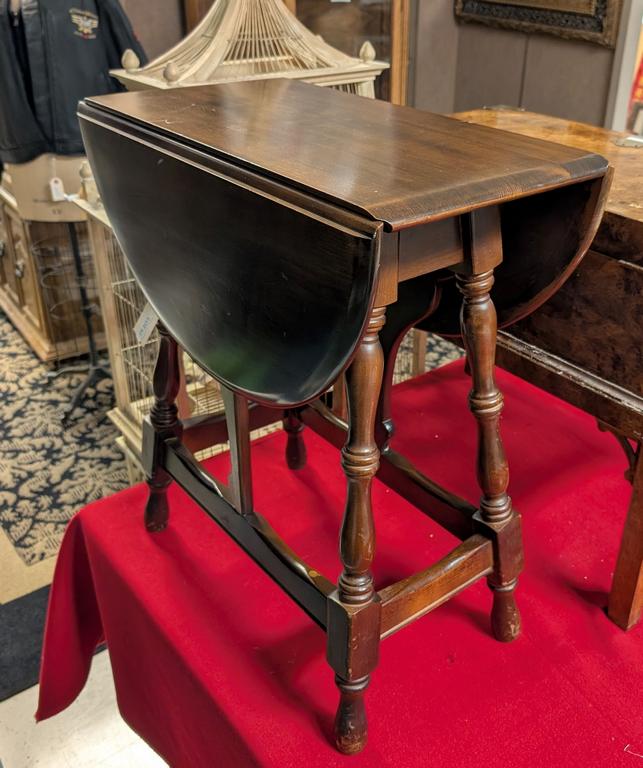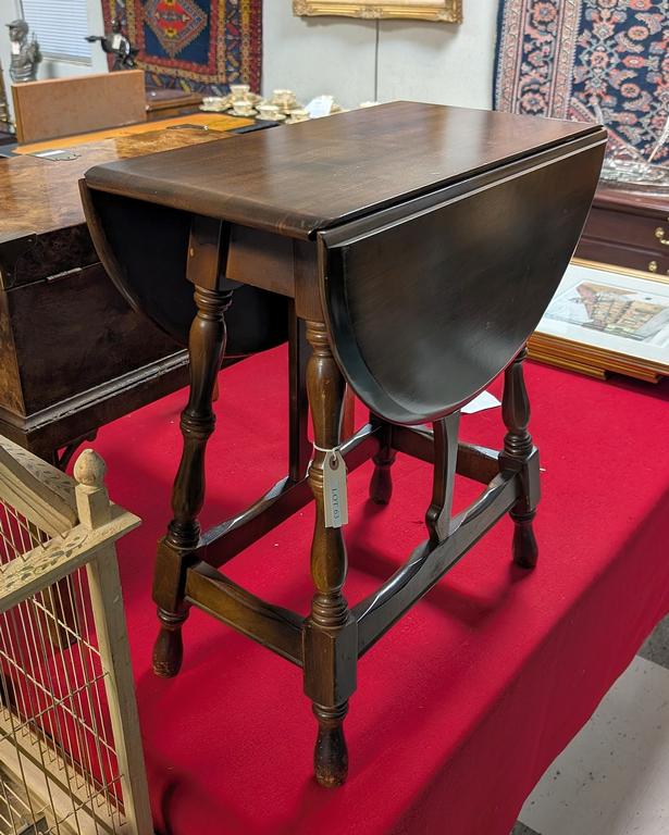 Walnut petit drop leaf side table. 25" tall.