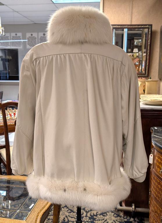 Women's White Leather Jacket With Fox Fur Lining. Size L.