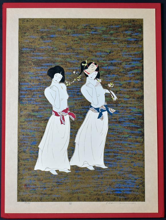 Lot 89: Yoshimi Okamoto, Suite of 5 Woodblock Prints, Hanamewarbe.