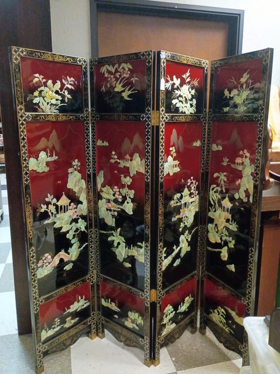 Lot 401: Oriental Black Lacquered 4-Panel Screen