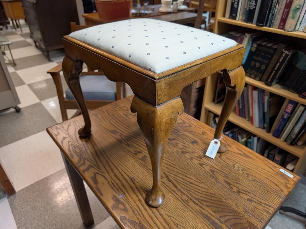 Lot 402: Walnut Vanity Stool With Upholstered Seat.