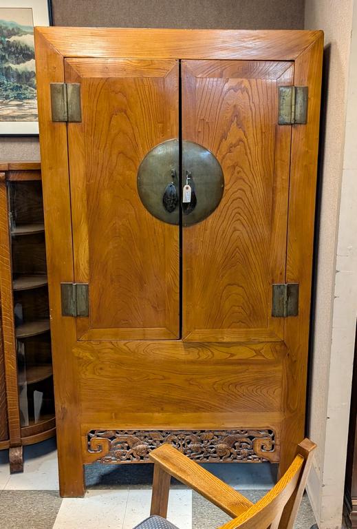 Lot 406: Chinese Carved Tall Wardrobe Cabinet.