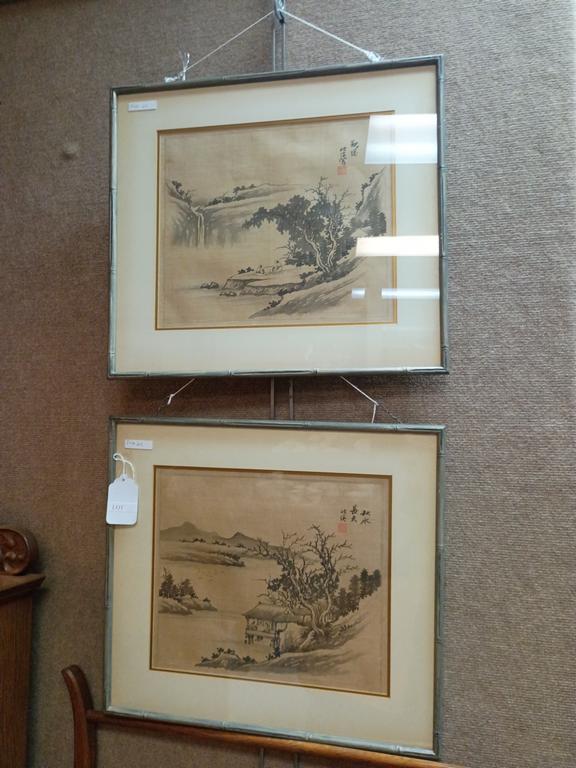 Lot 411: (2) Chinese Watercolors On Silk, Mountain Landscape.