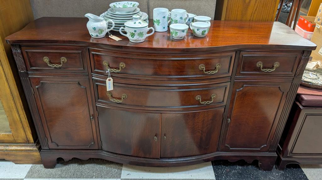 Lot 413: Mahogany Bow Front Sideboard With 4 Doors & 4 Drawers.