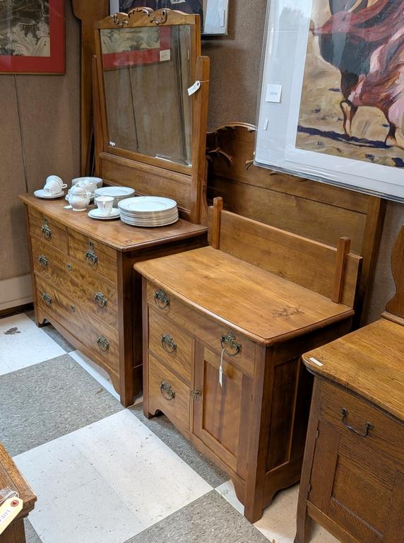 Lot 419: Cherry Wood 4-Drawer Chest With Mirror, Washstand And Full Bed.
