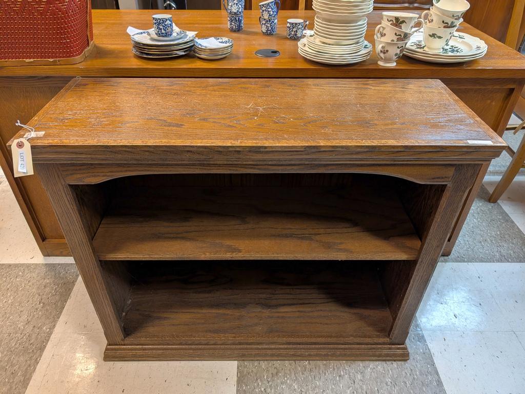Lot 420: Oak 2-Shelf Low Bookcase.