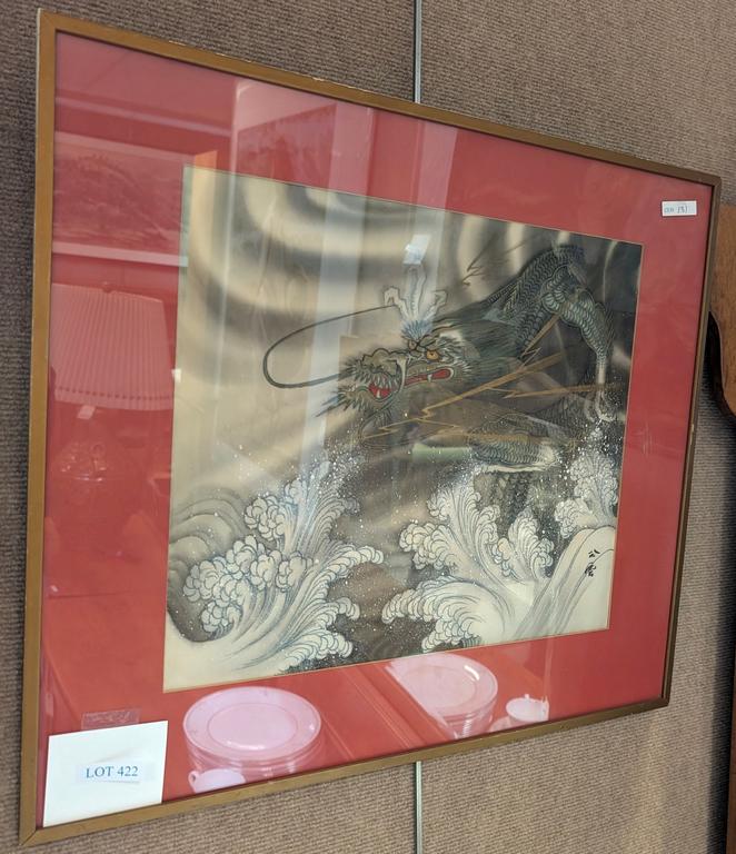 Lot 422: Japanese Style Painting Depicting A Dragon. 14.5" X 16". Framed.